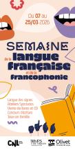 Magazine Semaine de la langue française et de la Francophonie Publié le 25 février 2026 Découvrez le programme de Semaine de la langue française et de la Francophonie du 7 au 25 mars à la bibliothèque Le Temps Retrouvé. Informations annexes au site Boîte à Outils Partager cette page Email Facebook Twitter Linkedin Programme SLFF.pdf (808.69 Kb.) Télécharger Feuilleter PrécédentRetour à la liste des publicationsSuivant